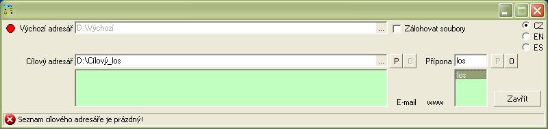 Po zadání výchozího adresáře musíte nejdříve vytvořit seznam používaných přípon. Tento seznam slouží pouze ke kontrole zadaných údajů a také k přiřazení přípony k cestě cílového adresáře.
